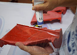 先把金屬材質表面清理干凈,然后涂膠 -