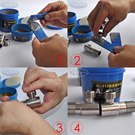 聚厲牌JL-112不銹鋼膠水為膏狀,不流淌,以不銹鋼為強(qiáng)化填充劑,耐磨損,耐腐蝕,適用于金屬不銹鋼、鋁、鐵、銅、金屬鑄件、金屬電鍍件等材質(zhì)的粘合。用途非常廣泛,同時(shí)應(yīng)用于各種不銹鋼及合金鋼制品、容器、管路、零件及設(shè)備的缺陷、磨損、劃傷、腐蝕、斷裂的修補(bǔ)修補(bǔ)等。