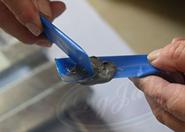 2、涂膠:聚厲牌不銹鋼膠水是由A、B雙組份組成,使用時(shí)嚴(yán)格按規(guī)定的配合比將主劑A和固化劑B充分混合到顏色均勻一致,并在規(guī)定的可使用時(shí)間內(nèi)用完,剩余的膠不可再用;